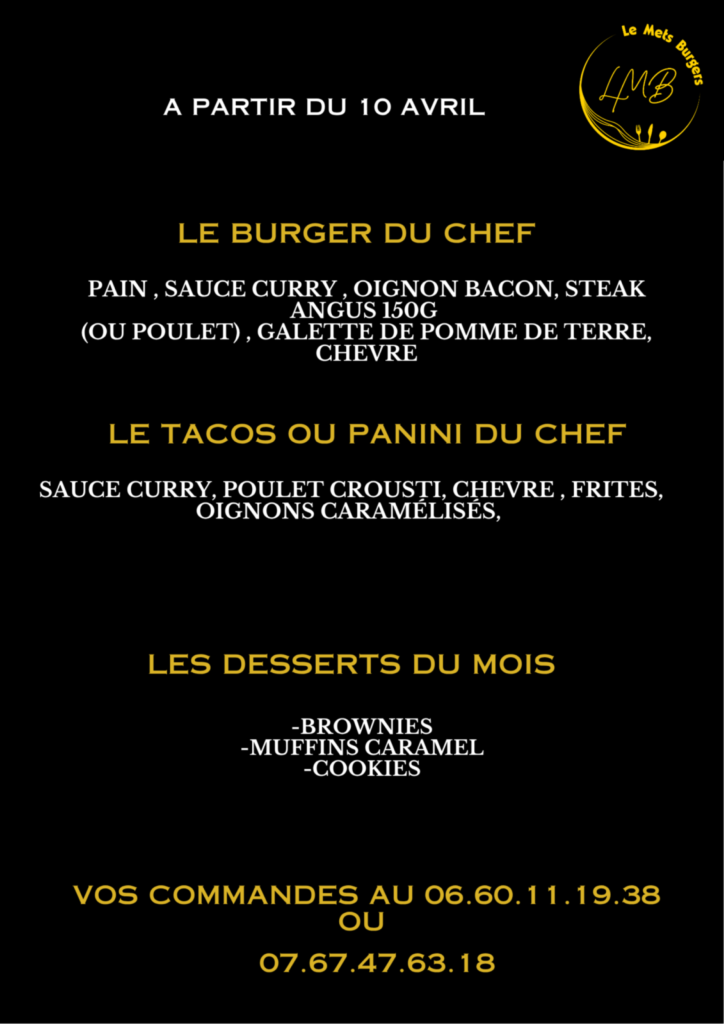Et suivre les actualités sur la page Facebook « Le Mets Burgers.