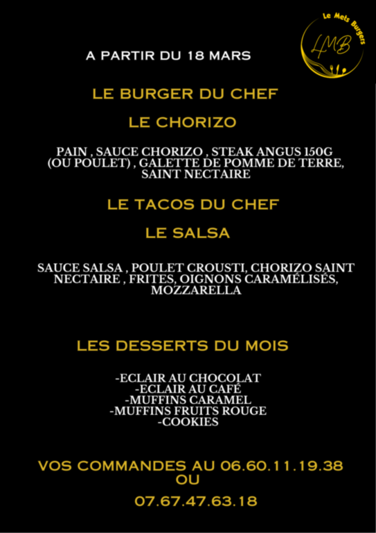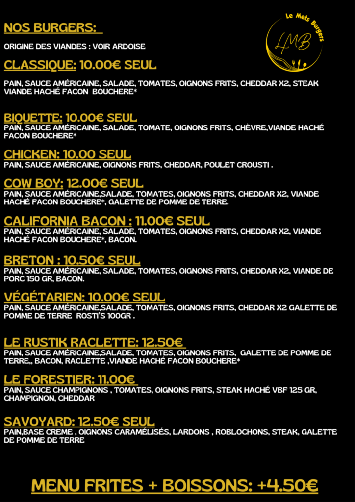 Et suivre les actualités sur la page Facebook « Le Mets Burgers.
